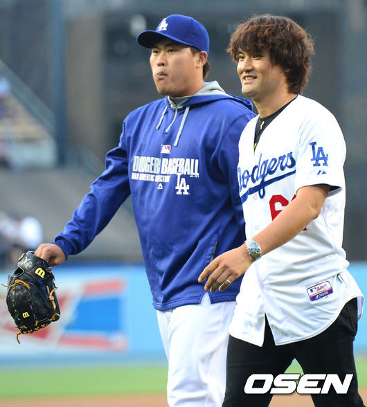 28일(이하 한국시간) 다저스타디엄이 한류로 덮혔다. 코리안 특급 박찬호와 류현진이 투포수를 맡았고 정용화, 알리 등 스타들도 출동, 한국 알리기에 나섰다. 이날 다저스타디움에는 ‘한국의 밤(KOREAN NIGHT)’ 행사가 열렸고 5만 여명의 입장객들은 류현진 바블헤드 인형을 받았다.