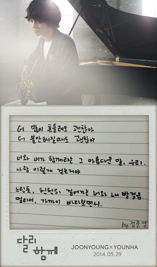 가수 정준영이 자필로 작성한 윤하와의 듀엣곡 '달리 함께'의 가사를 공개했다.