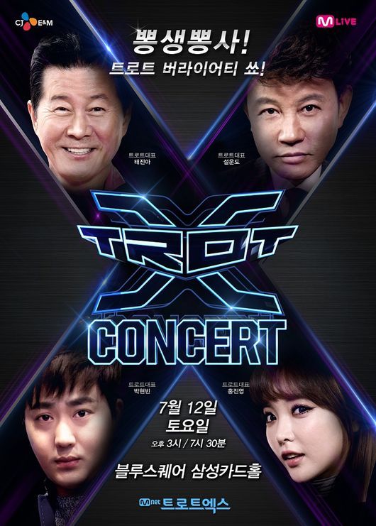 Mnet '트로트엑스'(연출 김태은)에 출연중인 4명의 트로듀서(트로트+프로듀서, 이하 TD) 태진아, 설운도, 박현빈, 홍진영 TD가 오는 7월 12일 두 차례에 걸쳐 진행되는 '트로트엑스' 콘서트'에 나선다.