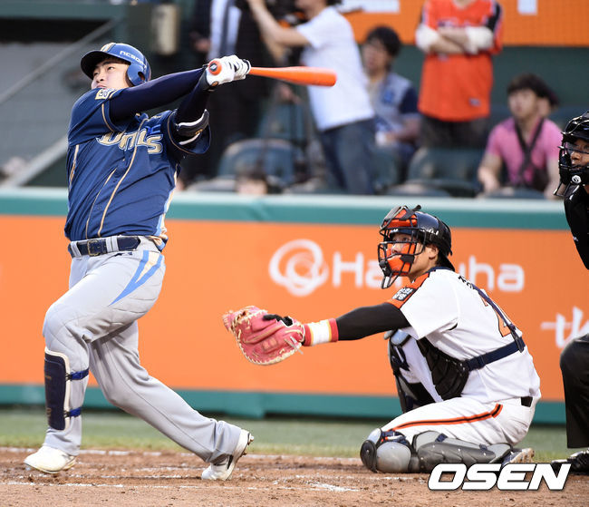 [OSEN=대전,김영민기자] 28일 오후 대전 한밭야구장에서 열린 '2014 한국야쿠르트 세븐 프로야구' 한화 이글즈와 NC 다이노스 경기,3회초 1사 만루 권희동 만루 홈런을 날리며 타구를 바라보고 있다.