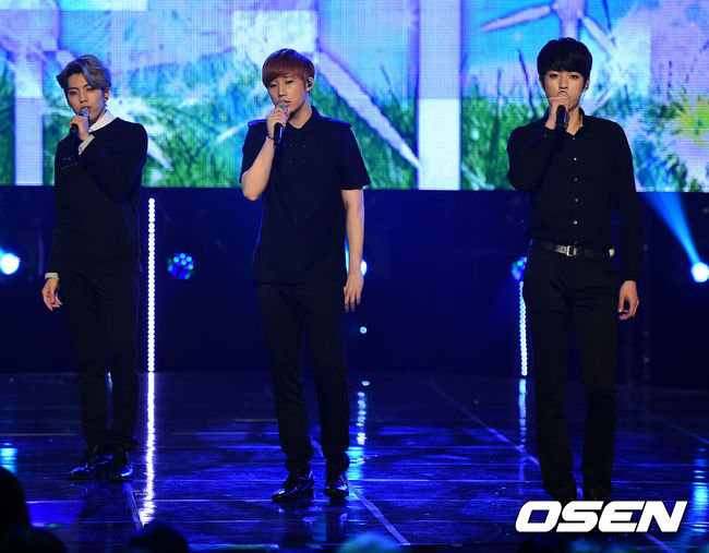 28일 오후 서울 마포구 상암동 누리꿈 스퀘어에서 진행된 MBC MUSIC '쇼 챔피언'에서 인피니트 동우, 성규, 성열이 멋진 무대를 선보이고 있다.