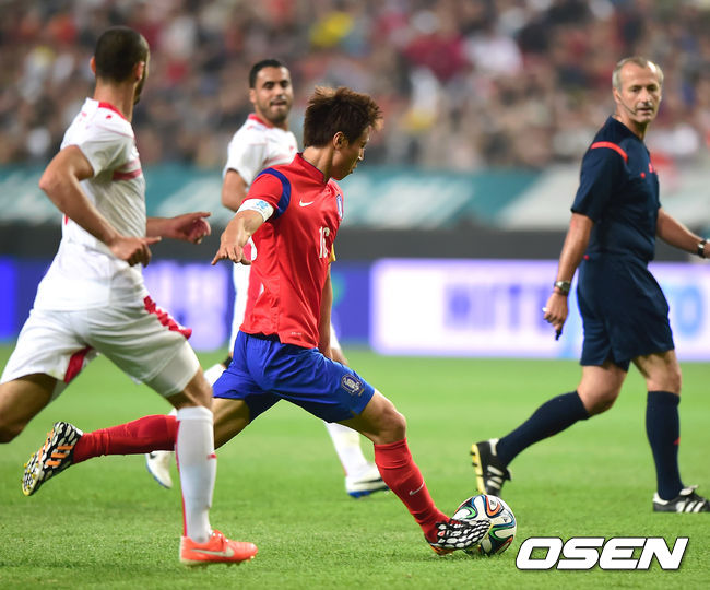 28일 오후 서울월드컵경기장에서 '2014 브라질 월드컵' 한국- 튀니지의 평가전, 전반 구자철이 강슛을 날리고 있다.