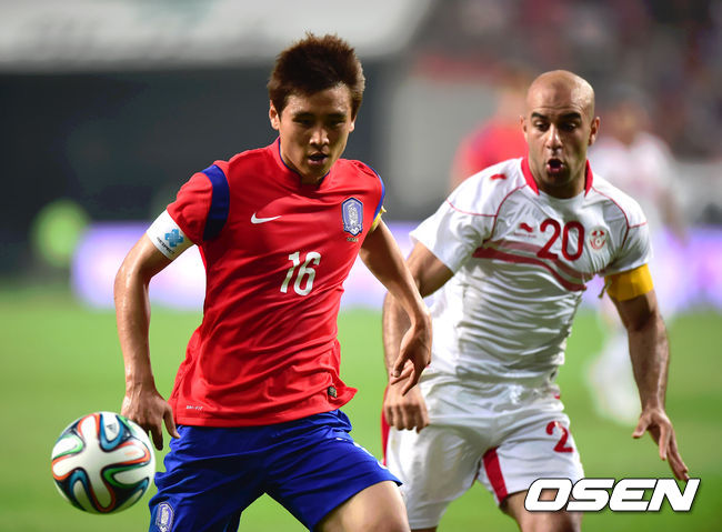 28일 오후 서울월드컵경기장에서 '2014 브라질 월드컵' 한국- 튀니지의 평가전, 전반 한국 구자철이 튀니지 문전에서 슈팅 찬스를 노리고 있다.