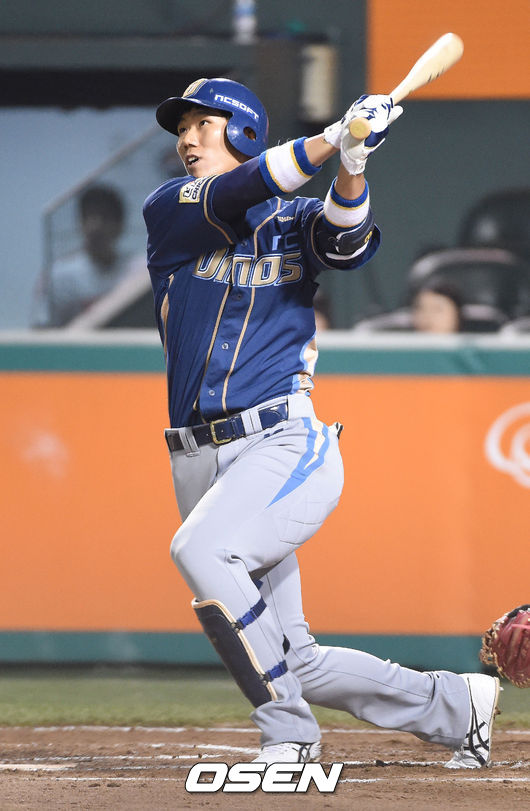 [OSEN=대전,김영민기자] 28일 오후 대전 한밭야구장에서 열린 '2014 한국야쿠르트 세븐 프로야구' 한화 이글즈와 NC 다이노스 경기, 6회초 2사 1,2루 모창민 좌월 스리런홈런을 날리고 자신의 타구를 바라보고 있다.