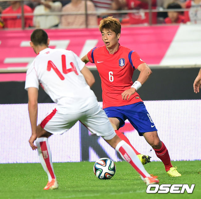 28일 오후 서울월드컵경기장에서 '2014 브라질 월드컵' 한국- 튀니지의 평가전, 전반 한국 기성용이 튀니지 문전에서 패스 할 곳을 찾고 있다.