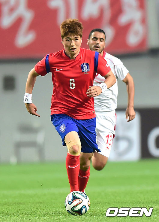 28일 오후 서울월드컵경기장에서 '2014 브라질 월드컵' 한국- 튀니지의 평가전, 후반 기성용이 중원을 돌파하고 있다.