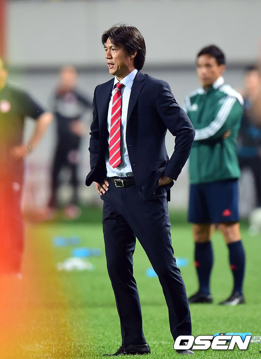 28일 오후 서울월드컵경기장에서 '2014 브라질 월드컵' 한국- 튀니지의 평가전, 후반 홍명보 감독이 작전지시를 하고 있다.