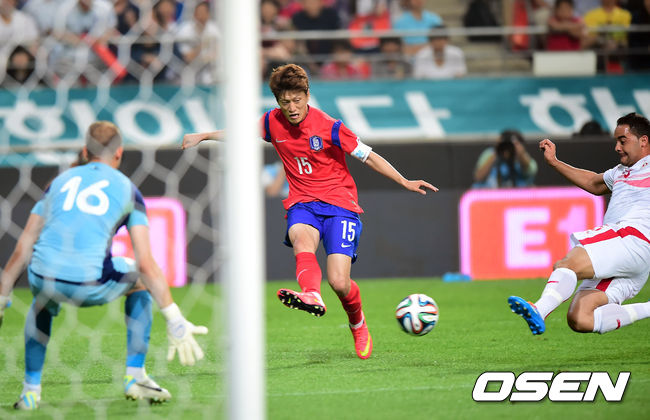 28일 오후 서울월드컵경기장에서 '2014 브라질 월드컵' 한국- 튀니지의 평가전, 후반 이청용의 찔러주는 패스가 튀니지 수비에 걸리고 있다.