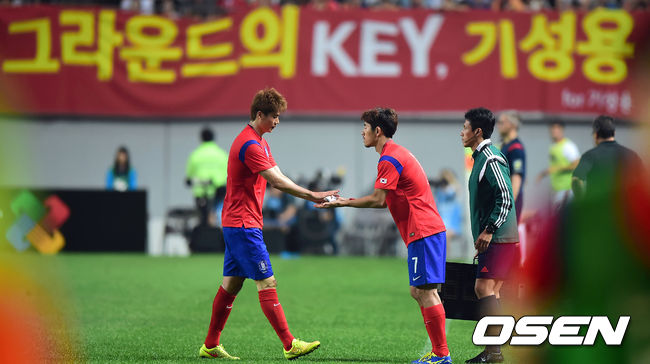 28일 오후 서울월드컵경기장에서 '2014 브라질 월드컵' 한국- 튀니지의 평가전, 후반 기성용이 하대성과 교체되고 있다.