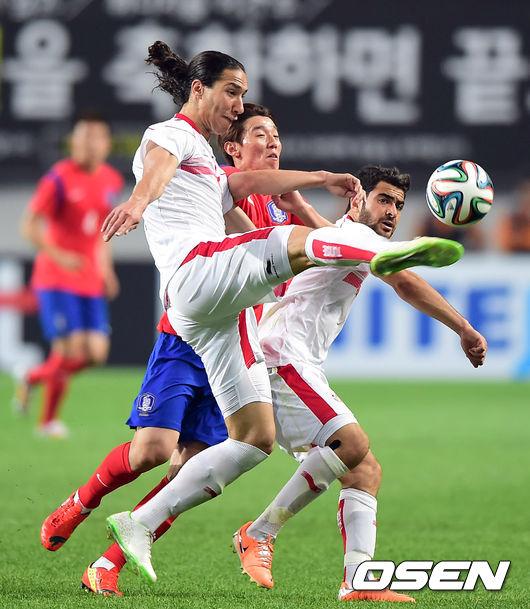 28일 오후 서울월드컵경기장에서 '2014 브라질 월드컵' 한국- 튀니지의 평가전, 후반 김보경에 앞서 튀니지 수비가 공을 걷어내고 있다.