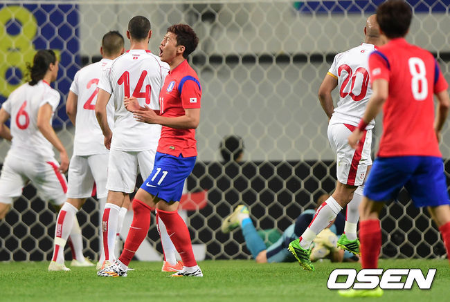 물론 좋은 장면도 나왔다. 전반 14분에는 이용이 오버래핑 이후 아크 정면으로 들어가는 구자철에게 패스를 해 왼발 슈팅을 이끌어냈다. 이어진 코너킥 상황에서는 김영권이 노마크 찬스를 만든 후 헤딩을 선보이기도 했다. 또한 전반 28분에는 이용이 적극적인 침투로 아크 정면까지 들어선 후 위협적인 슈팅을 선보이기도 했다.