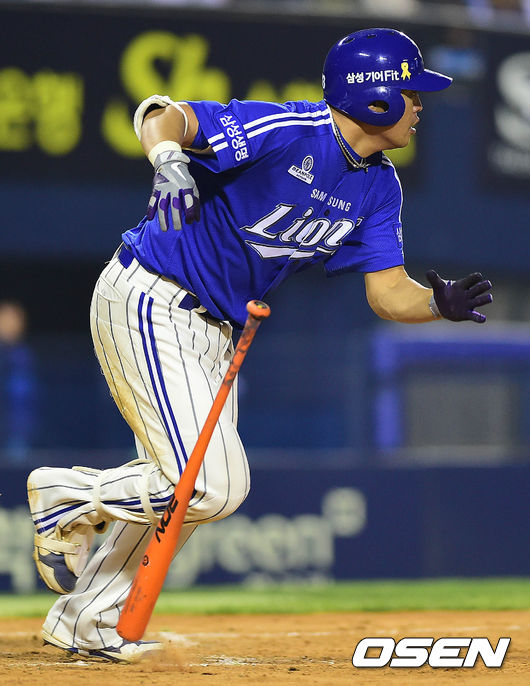 9회초 삼성 공격 2사 2루 상황 박한이가 1타점 적시 중전안타를 날리고 있다.