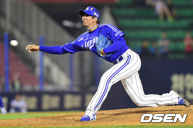 9회말 LG 공격 때 마운드에 오른 삼성 투수 임창용이 힘차게 공을 뿌리고 있다.