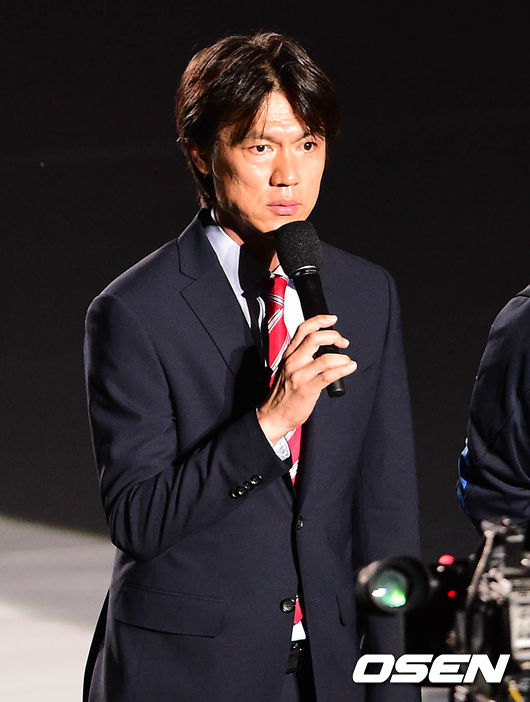 경기 종료 후 진행된 출정식에서 홍명보 감독이 각오를 밝히고 있다./sunday@osen.co.kr