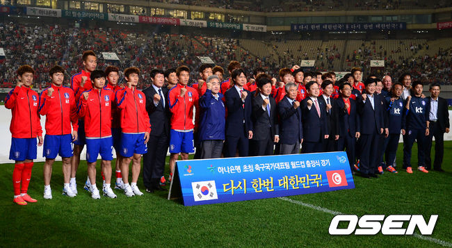 경기 종료 후 한국축구국가대표팀이 출정식을 갖고 포토타임을 갖고 있다./rumi@osen.co.kr