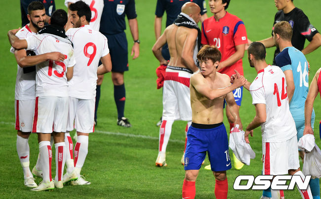 경기 종료 후 한국 김보경이 튀니지 선수들과 인사를 나누고 있다./sunday@osen.co.kr
