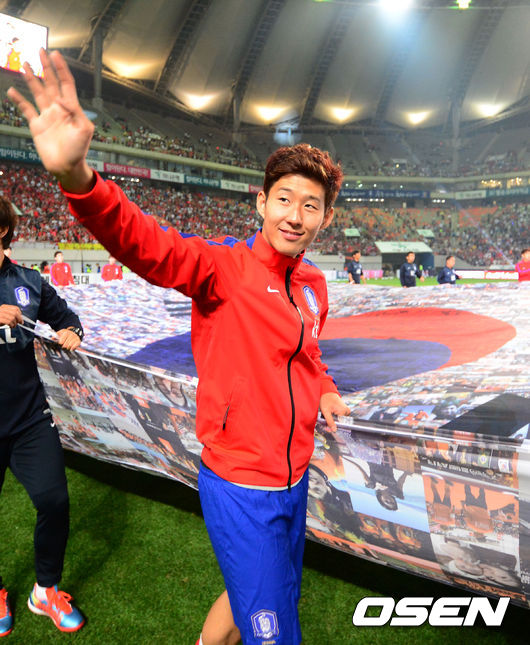 경기 종료 후 한국축구국가대표팀이 대형태극기를 들고 관중석을 향해 인사를 하고 있다./rumi@osen.co.kr