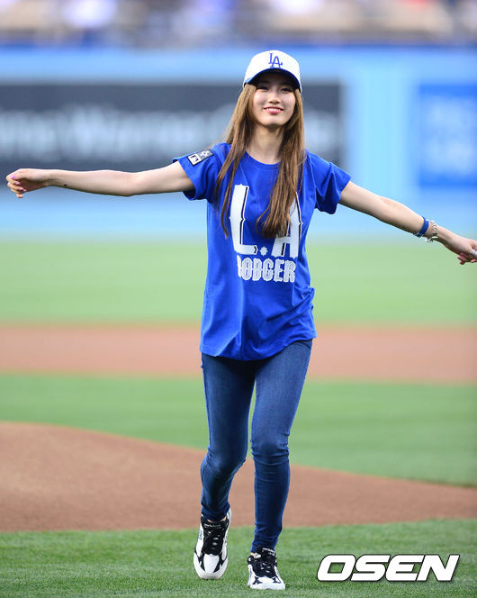 푸른 색 티셔츠 차림의 수지는 시구에 임하기 전 덕아웃에 들러 야시엘 푸이그, 디 고든, 후안 유리베 등과 인사를 나눴고 ‘GO LA, GO 미쓰에이, 다저스 GO’라는 랩이 들어가 있는 자신의 영상이 나오는 가운데 마운드 쪽으로 향했다.