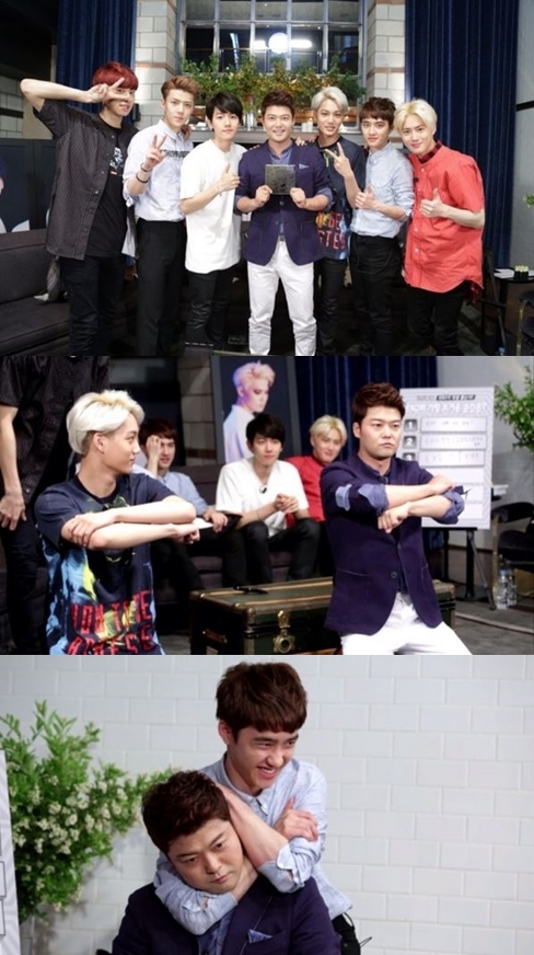 전현무는 29일 오전 자신의 트위터를 통해 "엑소와 전현무가 함께 한 '뜨거운 순간'! 금요일 밤 10시 10분 Mnet. 사진명 '엑소와 그냥 엑스인 한 남자'"라는 글과 함께 세 장의 사진을 게재했다.