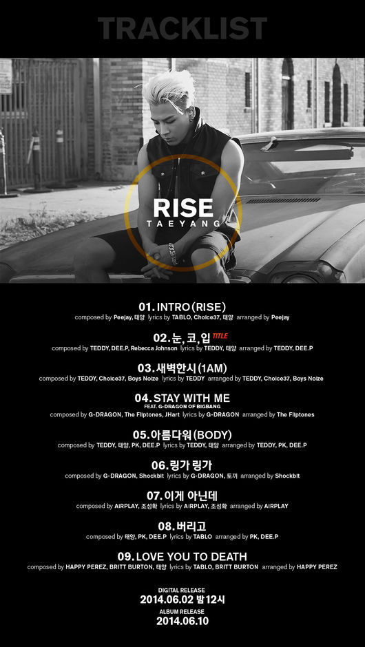 한편 태양의 정규 2집 앨범 ‘라이즈’ 음원은 오는 6월 2일 자정에 공개되며 6월 10일 앨범이 발매된다.