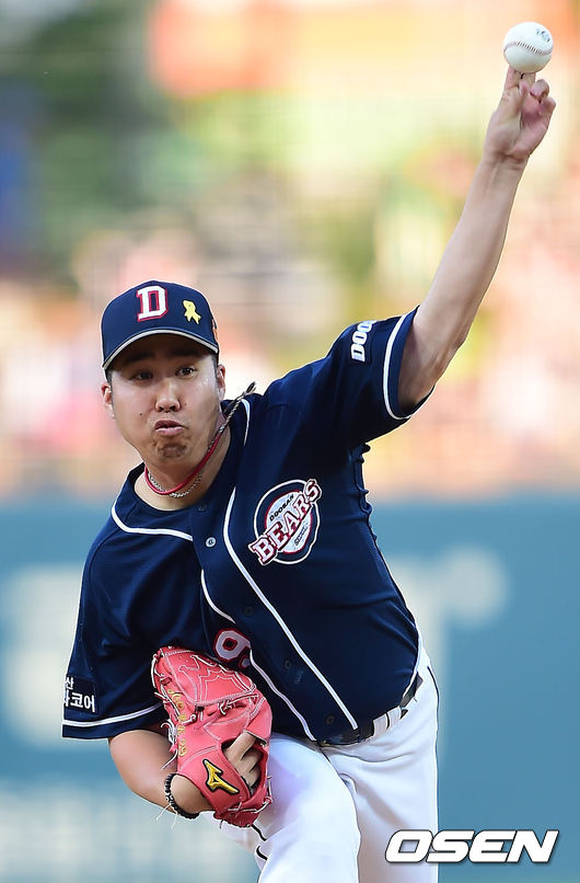 29일 오후 광주-KIA 챔피언스필드에서 열린 2014 한국야쿠르트 세븐 프로야구 KIA와 두산의 경기, 두산 선발 유희관이 힘차게 공을 뿌리고 있다.