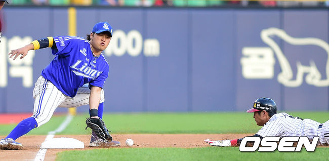 1회말 2사 2루 LG 오지환이 3루 도루에 성공하고 있다.