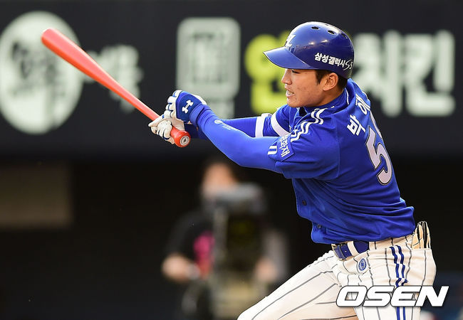 2회초 1사 1,3루 삼성 박해민이 1타점 적시타를 때리고 있다.