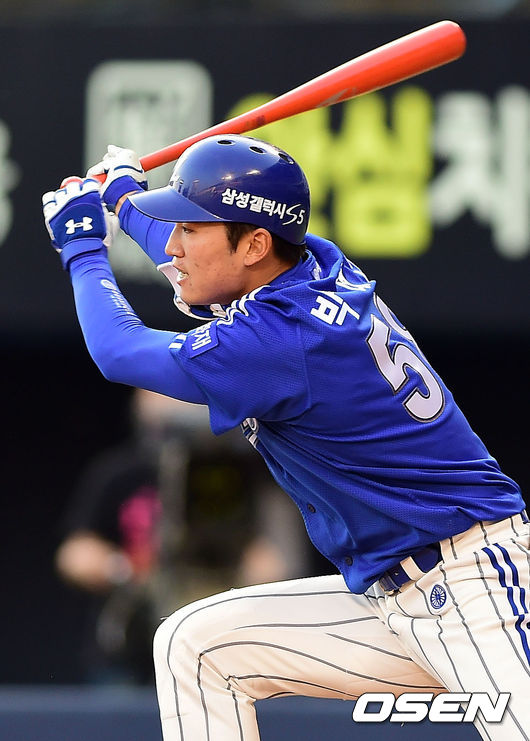 2회초 1사 1,3루 삼성 박해민이 1타점 적시타를 때리고 있다.