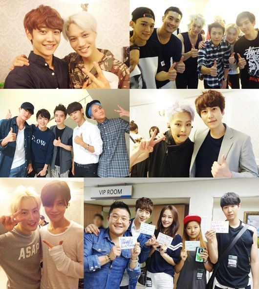또 수호는 샤이니의 태민과 귀여운 포즈를 취하며 카메라를 바라보고 있고, 슈퍼주니어의 최시원과 동해도 엑소 멤버들 사이에서 엑소의 공식 포즈인 '위 아 원(We are one)' 포즈를 취하고 있어 눈길을 끈다. 또 디오는 슈퍼주니어의 려욱, 제국의아이들 멤버 박형식, 빅스 멤버들과 함께 다정한 분위기를 연출했다.