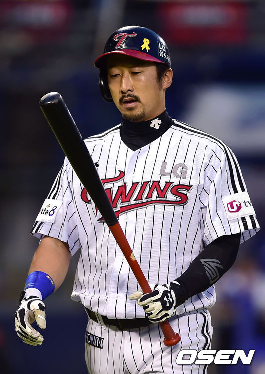 4회말 1사 3루 LG 이병규가 삼진을 당한 뒤 더그아웃으로 들어오고 있다.