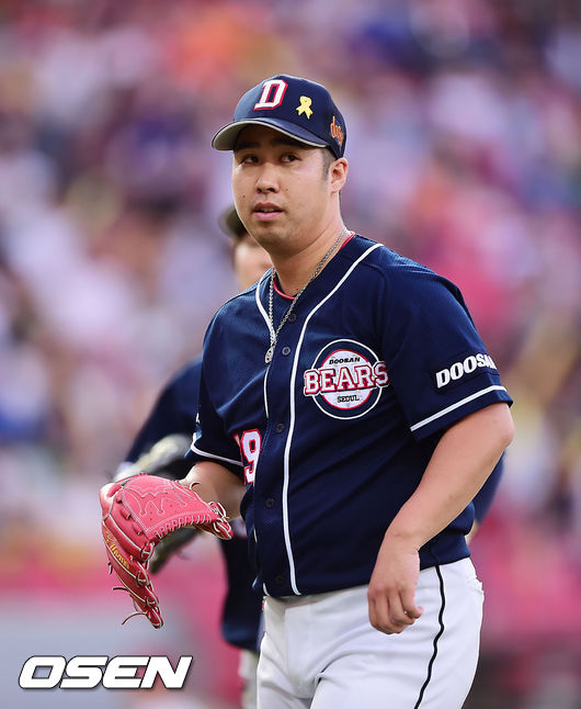 29일 오후 광주-KIA 챔피언스필드에서 열린 2014 한국야쿠르트 세븐 프로야구 KIA와 두산의 경기, 3회를 마치고 두산 선발 유희관이 덕아웃으로 향하고 있다.