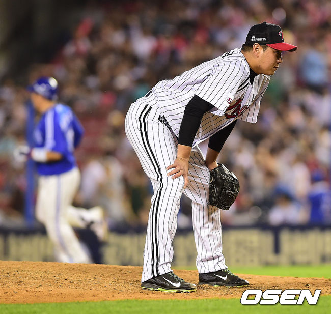 5회초 무사 1루 LG 류제국이 삼성 최형우에게 홈런을 허용한 뒤 아쉬워하고 있다.
