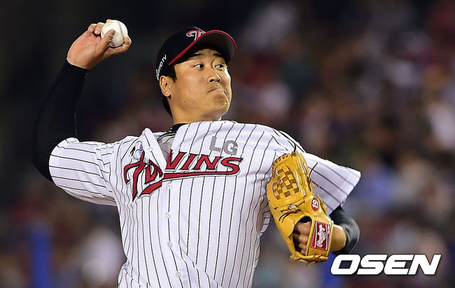 7회초 1사 1루 LG 정현욱이 마운드에 올라 역투하고 있다.