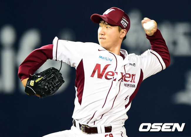 7회초 2사 2루 넥센 강윤구가 힘차게 공을 뿌리고 있다.