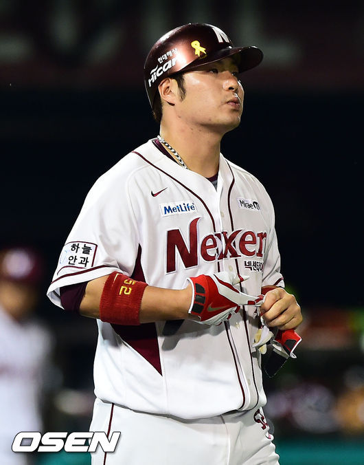 8회말 2사 2루 삼진아웃된 박병호가 아쉬운 표정을 짓고 있다.