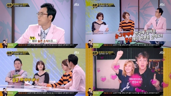 29일 오후 방송된 종합편성채널 JTBC 시사·교양 프로그램 '썰전-예능 심판자'에서는 건강악화로 첫 번째 내한공연을 취소하게 된 폴 매카트니에 대해 토론했다.