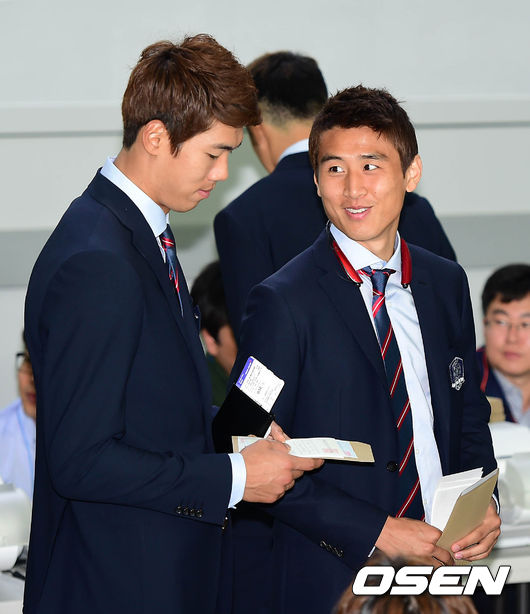 출국에 앞서 축구대표팀 이범영과 구자철이 사전 투표를 기다리고 있다.