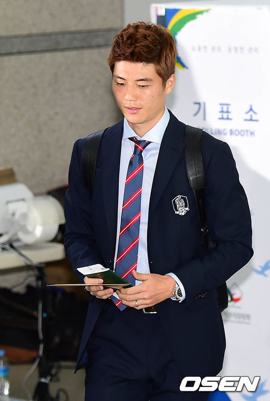 출국에 앞서 축구대표팀 기성용이 사전 투표를 마치고 기표소를 나가고 있다.