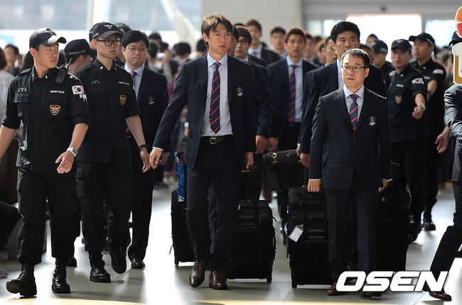 한국 축구대표팀이 출국장으로 향하고 있다.