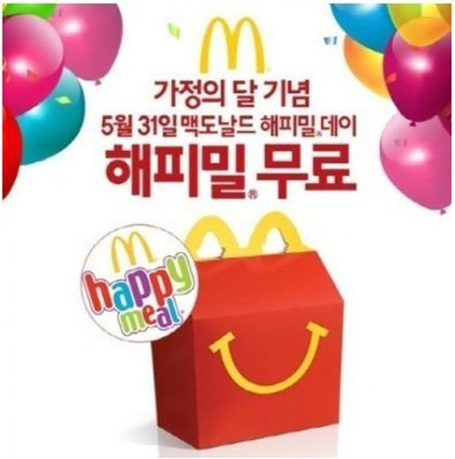 한편 '해피밀 데이' 무료 증정 행사는 31일 당일 오전 9시부터 매장당 선착순 100명까지 해당되며, 매장을 방문하는 7세 이하의 어린이는 누구나 에그 맥머핀(오전 9시부터 10시30분까지) 또는 불고기버거(오전 10시 30분부터) 해피밀 세트를 무료로 받을 수 있다.