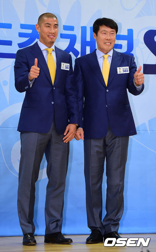 차두리, 차범근 해설위원이 포토타임을 갖고 있다.
