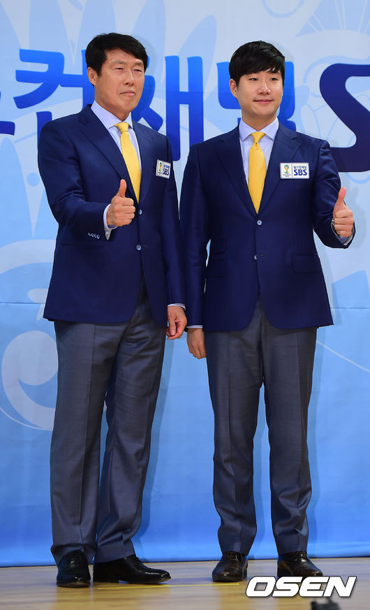 차범근 해설위원과 배성재 아나운서가 포토타임을 갖고 있다.