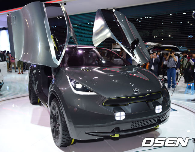 기아차는 지난해 9월 프랑크푸르트 모터쇼에서 최초로 공개한 하이브리드 콤팩트 크로스오버 콘셉트카 '니로(Niro)'를 국내에 최초로 공개했다. 하이브리드 콤팩트 크로스오버 콘셉트카인 '니로'는 콤팩트한 차체에 기아차만의 정체성이 반영된 라디에이터그릴, 넓은 헤드램프 등의 외관을 갖췄으며 수퍼카에 주로 탑재되는 '걸 윙 도어'를 장착해 역동적인 느낌을 더했다.