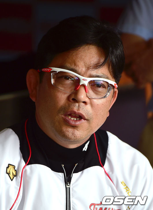 29일 오후 목동야구장에서 열리는 '2014 한국야쿠르트 세븐 프로야구' 넥센 히어로즈와 LG 트윈스의 경기에 앞서 LG 양상문 감독이 취재진과 이야기를 나누고 있다.