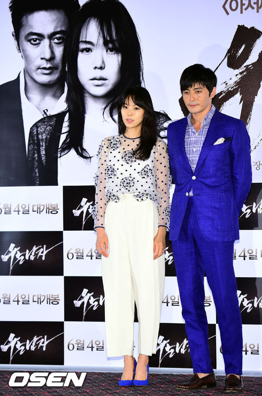 30일 오후 서울 왕십리 CGV에서 진행된 영화 '우는 남자'(감독 이정범) 언론배급시사회에서 김민희와 장동건이 포토타임을 갖고 있다.