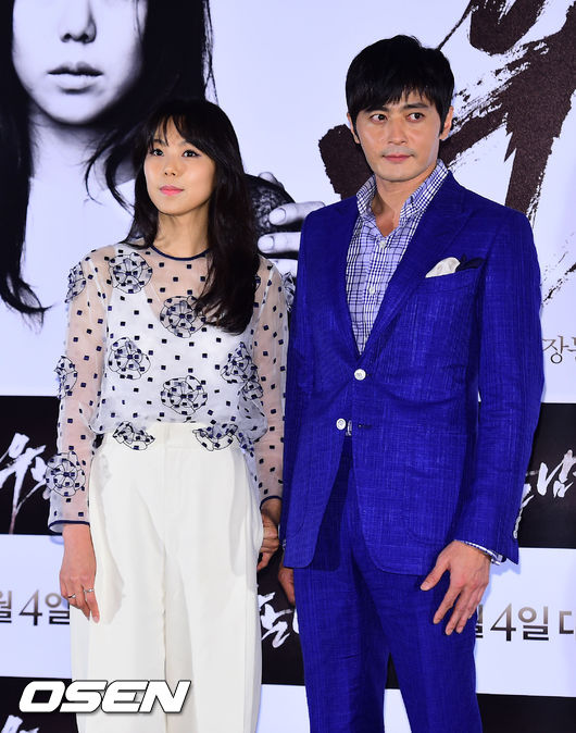 30일 오후 서울 왕십리 CGV에서 진행된 영화 '우는 남자'(감독 이정범) 언론배급시사회에서 김민희와 장동건이 포토타임을 갖고 있다.