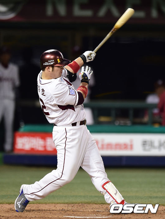 4회말 2사 1,2루 넥센 박병호가 1타점 적시타를 때리고 있다.