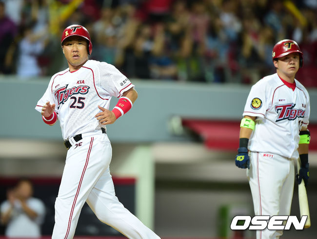 30일 오후 광주-KIA 챔피언스필드에서 열린 2014 한국야쿠르트 세븐 프로야구 KIA 타이거즈와 NC 다이노스의 경기, 5회말 1사 주자 1,3루 KIA 차일목 타석에서 NC 선발 이재학이 1루에 견제구를 던지며 실책을 범해 3루주자 이범호가 홈을 밟고 있다.