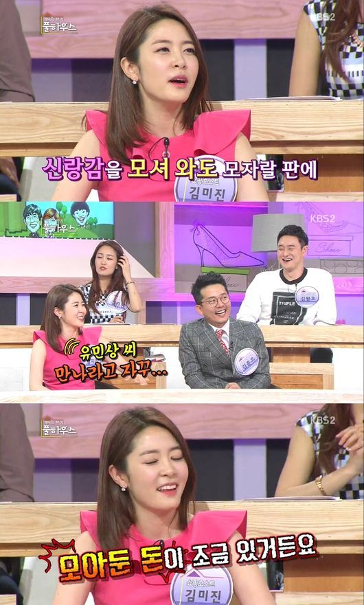 이날 김미진은 "오빠가 유민상을 만나라고 한다"고 말하자 김준호는 "모아 놓은 돈이 있다"고 적극 추천했다.