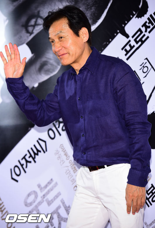 30일 오후 서울 영등포 CGV에서 진행된 영화 '우는 남자'(감독 이정범) VIP시사회에 참석한 안성기가 포토타임을 갖고 있다.